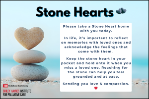 Take a stone heart (one per person) home with you at the Symposium at our customized Stone Heart table.